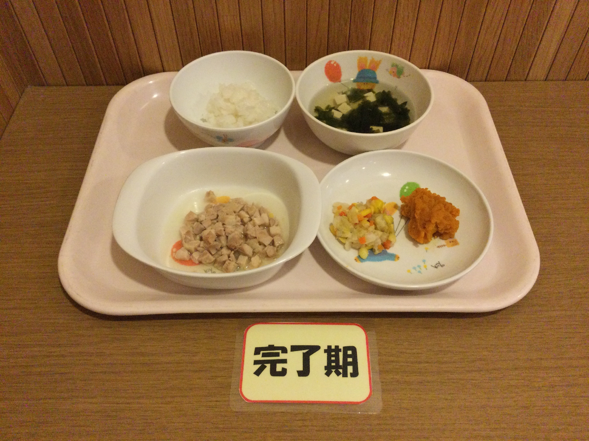 本日、完了食・普通食の「しらすとキャベツのサラダ」が、「しらすと白菜のサラダ」に変更になっています。